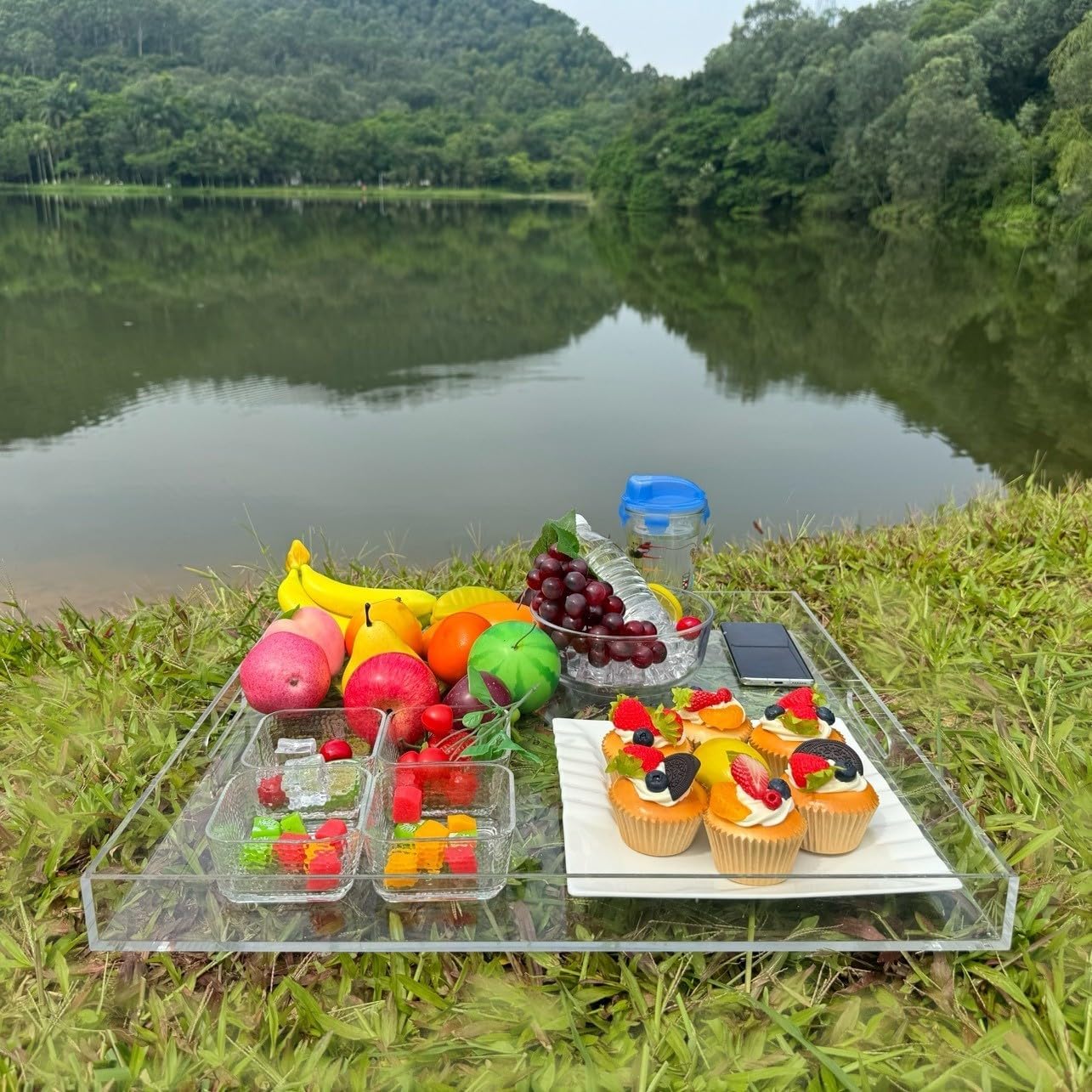 Extra Large Clear Modern Acrylic Ottoman Tray with Cutout Handles 22x22 Inch Over-Sized Serving Tray Organizer