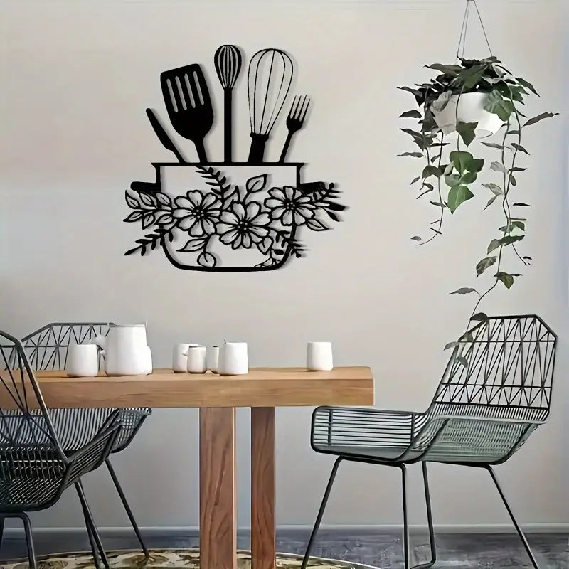 Add a touch of artistic charm to your kitchen with this beautifully detailed black floral and kitchen utensil wall art. Combining elegance with culinary character, it’s the perfect accent for your cooking space — blending floral beauty with the love of food in a sleek, modern piece.